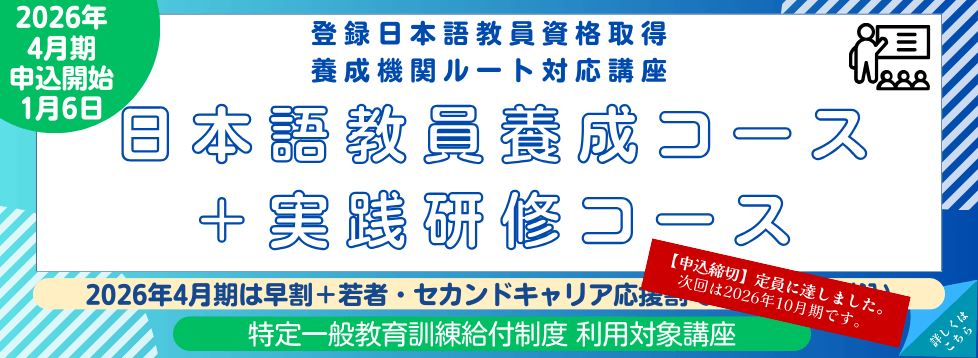 (※ 2026年1月期、4月期は定員数に達しておりますので、お申し込みは締め切らせていただきました。)2025年4月からは「日本語教員養成コース + 実践研修コース」を開講しています。