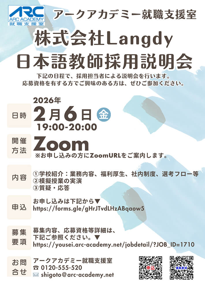 アークアカデミー就職支援室主催「株式会社Langdy 日本語教師採用説明会」開催
